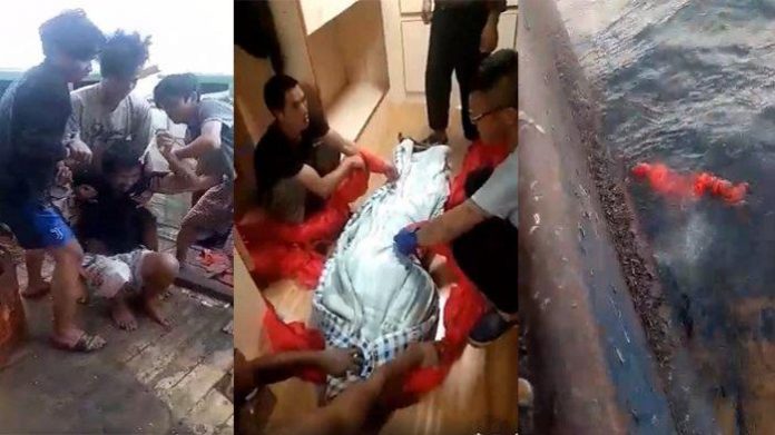 Mayat yang telah dibuang ke laut tampak mengapung di permukaan laut.