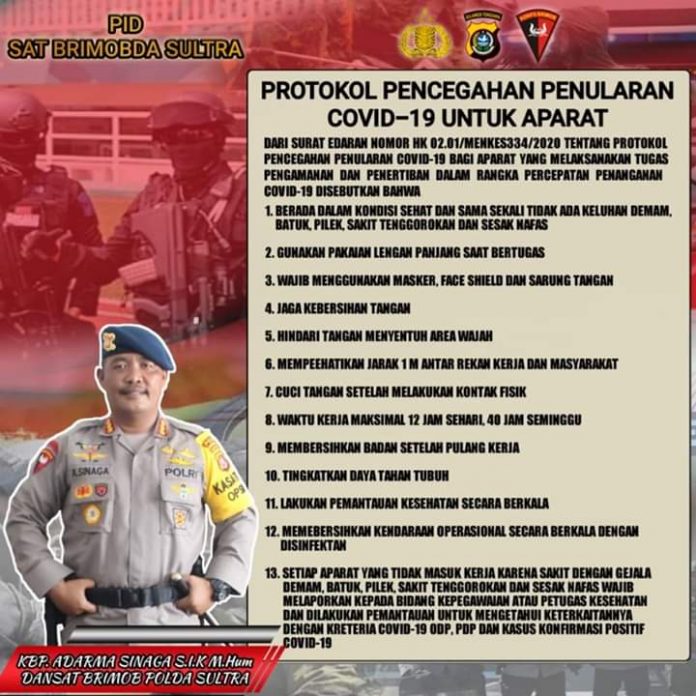 “Polda Sultra terus akan turun membantu masyarakat, untuk mengatasi korban dampak pandemi covid 19. Diharapkan semua masyarakat untuk mematuhi aturan pencegahan dan penyebaran virus covid 19,” terang Dansat Brimob  Kombes Pol Adarma Sinaga, SIK, M. Hum.