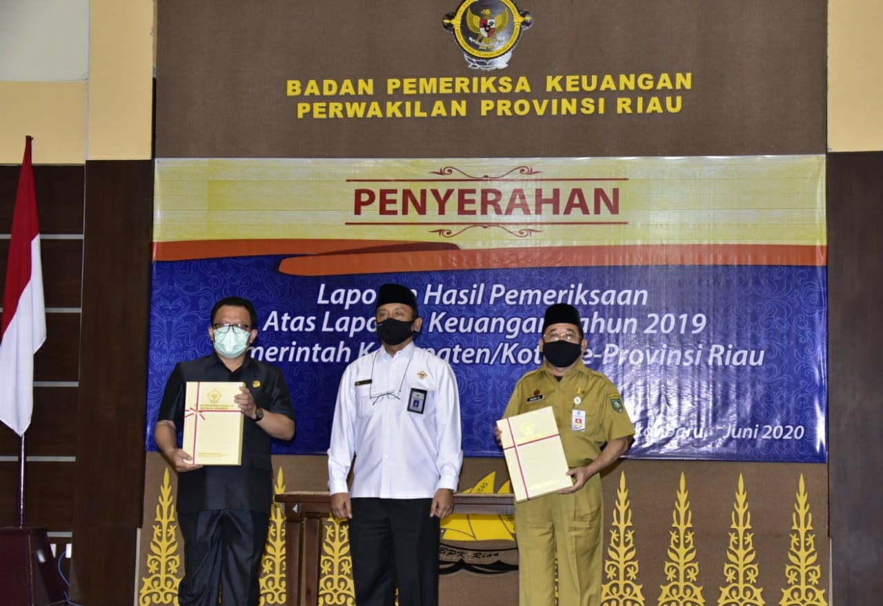 Penyerahan LHP dan opini WTP LKPD Tahun Anggaran 2019 Pemerintah Kabupaten Bengkalis tersebut disampaikan secara langsung oleh Kepala BPK-RI Perwakilan Provinsi Riau Bapak Thomas Ipoeng Andjar Wasita kepada Plh. Bupati Bengkalis H. Bustami. HY, bertempat di Gedung BPK-RI Perwakilan Provinsi Riau Pekanbaru, Senin (29/06/2020) sore.
