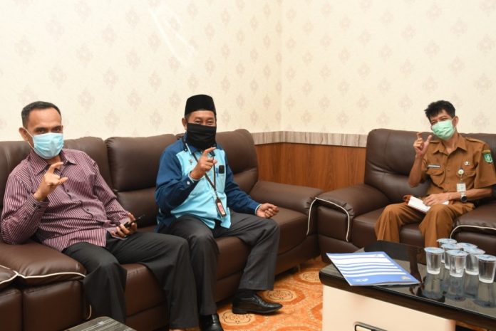 Foto Kepala BPS Kabupaten Bengkalis Sukarwanto ketika mengadakan pertemuan dengan Kadis Kominfotik Johansyah Syafri, Selasa, 16 Juni 2020