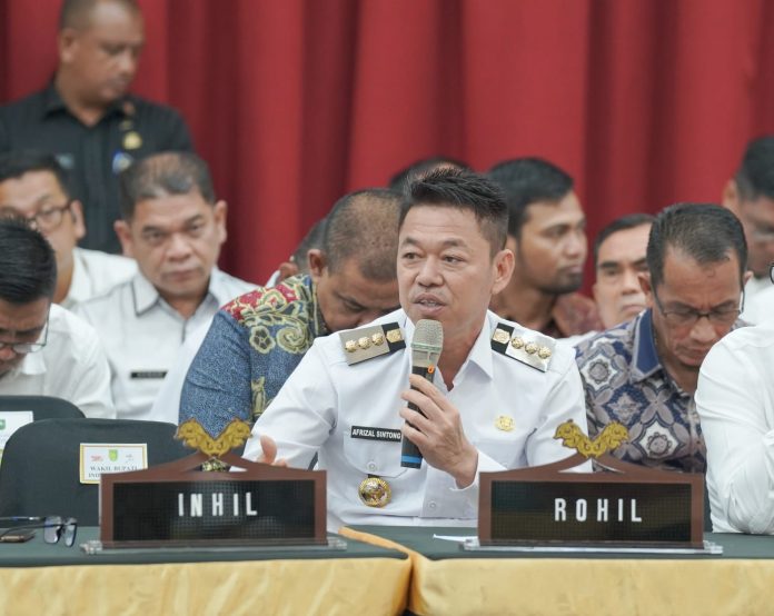 MitraNews.co, Pekanbaru – Bupati Rokan Hilir (Rohil) Afrizal Sintong turut hadir dalam agenda musyawarah rencana pembangunan (Musrenbang) Rencana Kerja Perangkat Daerah (RKPD) Provinsi Riau Tahun 2024, di Gedung Daerah Balai Serindit, Rabu (5/4/2023).