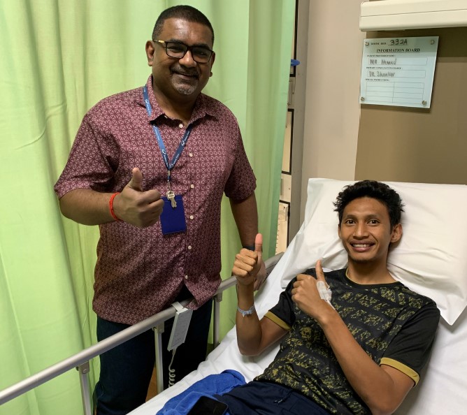Setelah hampir sebulan menjalani operasi, Syamim bisa beraktivitas seperti biasa namun perlu menjalani latihan rehabilitasi sebelum bisa bermain lagi, kata dokter Shankar.