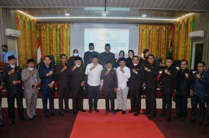 “Dalam massa pandemi covid 19 ini, ayo kita sama- sama dalam membangun daerah ini, dengan kita ikuti dengan aturan yang ada, yakni DPRD adalah bagian unsur penyengara pemerintah dan kami akan bersama membagun daerah,” kata Bupati terpilih H.Muhamad Adil SH usai acara.