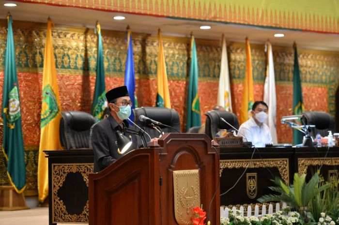 PEKANBARU, MitraNews.co – Gubernur Riau (Gubri), Syamsuar menghadiri rapat paripurna dewan dalam rangka penyampaian laporan hasil kerja badan anggaran terhadap rancangan peraturan daerah (Perda) tentang APBD provinsi Riau tahun anggaran 2021 sekaligus persetujuan dewan dan pendapat akhir kepala daerah.