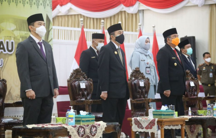 Dalam upacara virtual tersebut, Gubri didampingi oleh Wakil Gubernur Riau, Edy Natar Nasution, Asisten I Setda Riau Jendri Salmon Ginting, Asisten II Setda Riau Eva Refita, Forkopimda Riau, Kepala OPD di lingkungan Pemprov Riau, serta tamu undangan lainnya.
