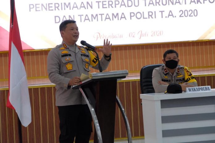PEKANBARU, MitraNews.co – Polda Riau menggelar acara Penandatanganan Pakta Integritas Penerimaan Taruna Akpol dan Tamtama Polri TA. 2020, di Aula Bhayangkara Sat Brimob Polda Riau pada Kamis, (02/7/2020).