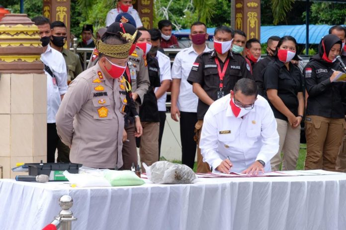 PEKANBARU, MitraNews.co – Kapolda Riu Irjen Pol Agung Setia Imam Efendi SH SIK MSIĀ  bersama Wakil Gubernur Riau Brigjen TNI Purn Edy Natar Nasution hadir pada acara Pemusnahan barang bukti Narkoba hasil tangkapan Polda Riau dan jajaran, Rabu (24/6/2020).