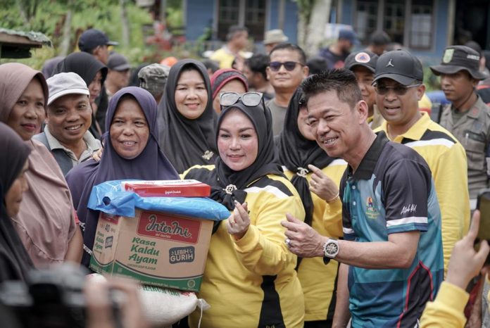 Dengan kondisi banjir yang tengah melanda, Bupati Rohil Afrizal Sintong secara langsung melakukan peninjauan dan membagikan sembako kepada masyarakat, Minggu (29/10/2023).