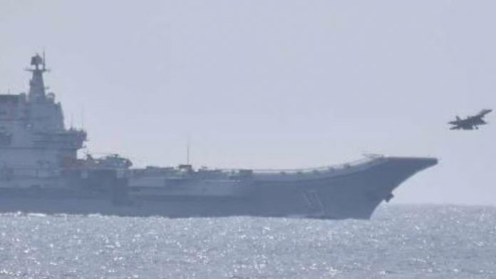 Selama latihan tersebut, jet-jet tempur J15 dikerahkan dari kapal induk China Shandong dan termasuk di antara pesawat yang melintasi garis median.
