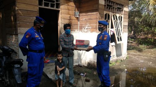 Sebanyak 35 Paket sembako diberikan kepada 35 keluarga yang membutuhkan terutama yang bertempat tinggal disepanjang bantaran sungai siak disekitar Kantor Sat Pol Air Polres Siak.