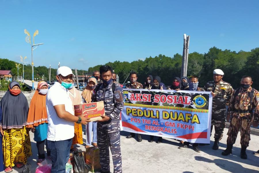 Melalui kegiatan tersebut TNI AL Pos Bengkalis bersama GM-FKPPI menyerahkan 50 paket bantuan masyarakat setempat.