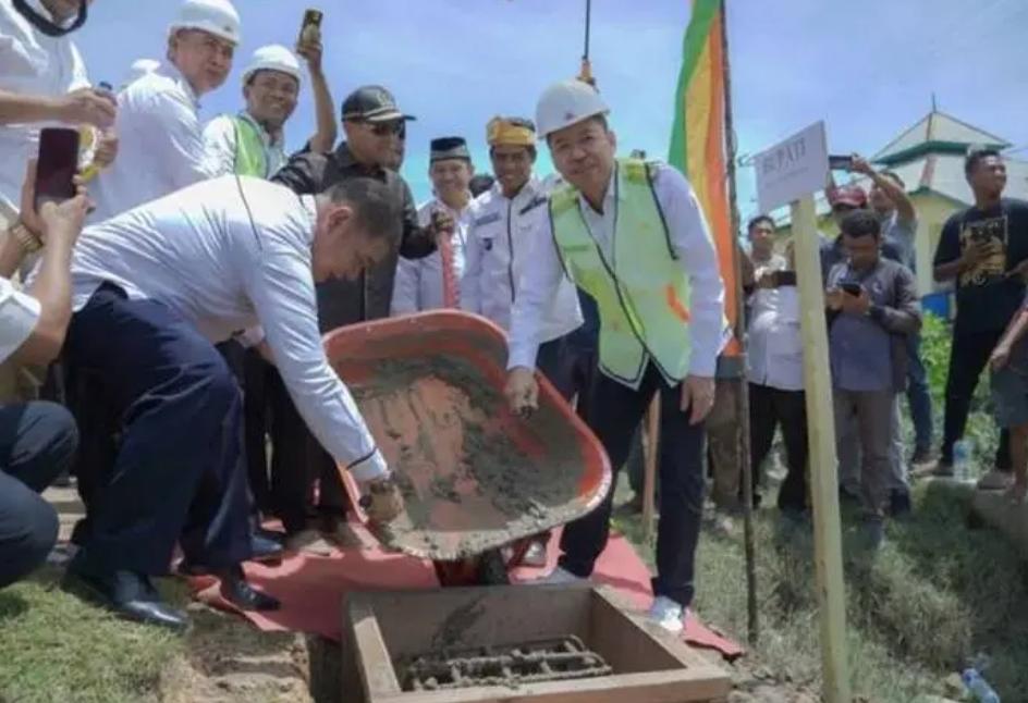 Peletakan batu pertama yang dilakukan Afrizal Sintong itu, turut didampingi wakil Bupati Rohil H Sulaiman dan pengurus Yayasan Tridharma Samudra Sinaboi selaku pelaksana pembangunan jembatan itu.