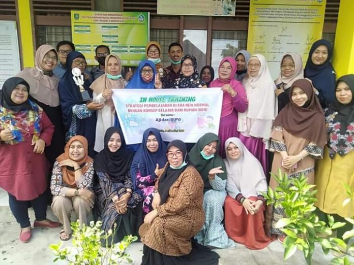 BENGKALIS, MitraNews.co – Pembekalan Pembelajaran dengan konsep Belajar Dari Rumah (BDR) melalui kegiatan In House Training (IHT) oleh Ajidar, S.Pd yang merupakan salah seorang guru SMPN 3 Bengkalis dan diikuti oleh semua guru usai dilakukan pada Senin 6 s.d 8 Juli 2020.