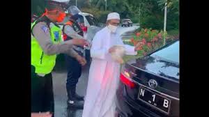 Petugas menghentikan sedan hitam Toyota Camry bernopol N1B yang ditumpangi Habib Umar.
