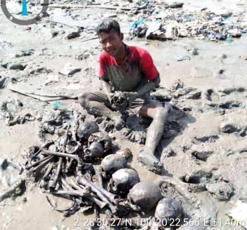 Dimana, tengkorak manusia ditemukan saat warga tersebut sedang menanam pohon mangrove. Saat menanam pohon mangrove, warga melihat puluhan tengkorak berserakan.
